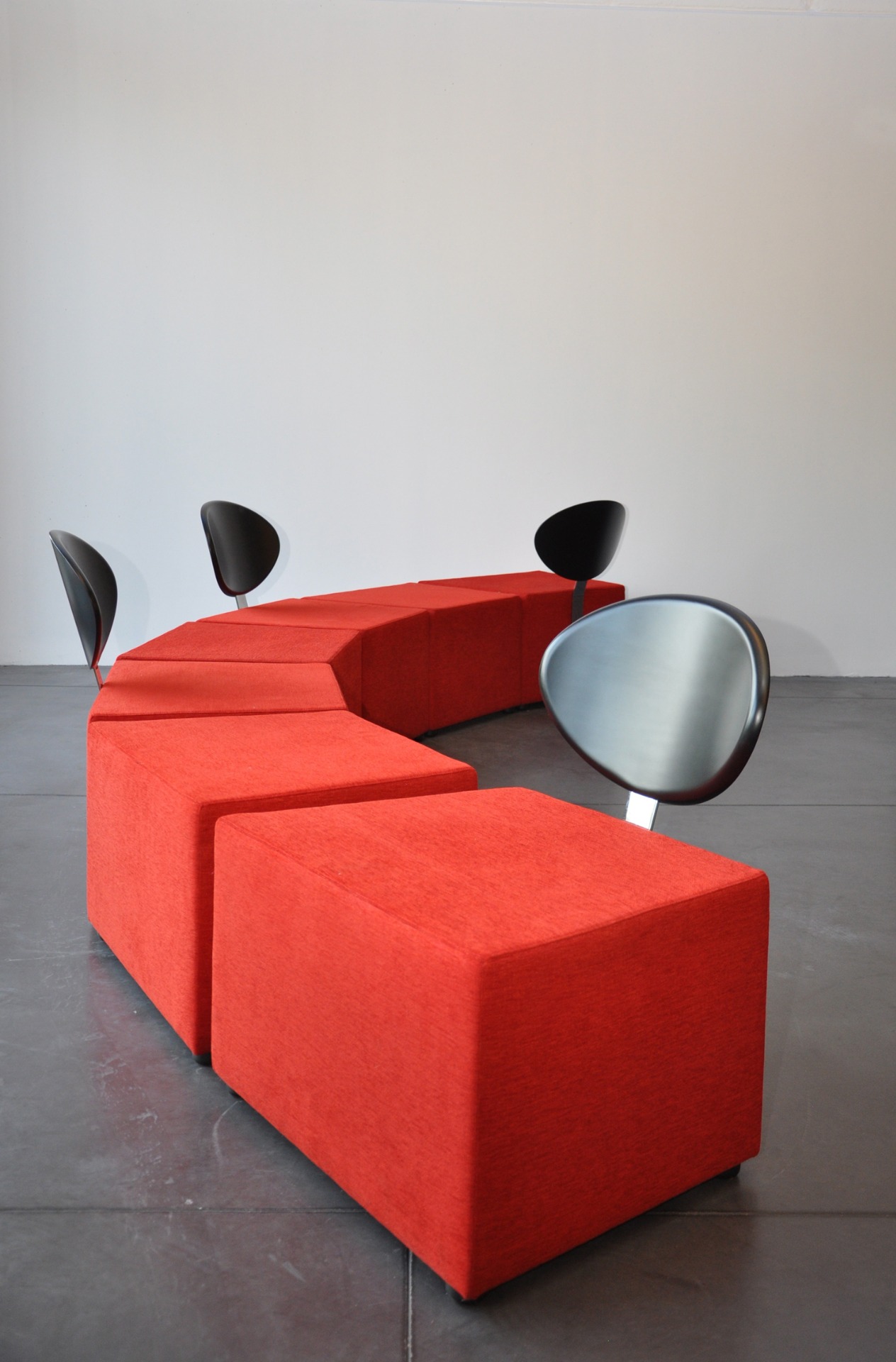 Capdell zitbank bestaande uit 7 delen waarvan 4 delen met houten rugleuning.Zit gestoffeerd.