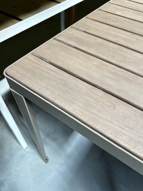 Ethimo Laren tafel frame taupe blad pickled teak.