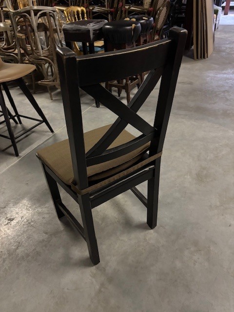 Tweedehands stoel in hout.Afzonderlijk kussen op de zit.