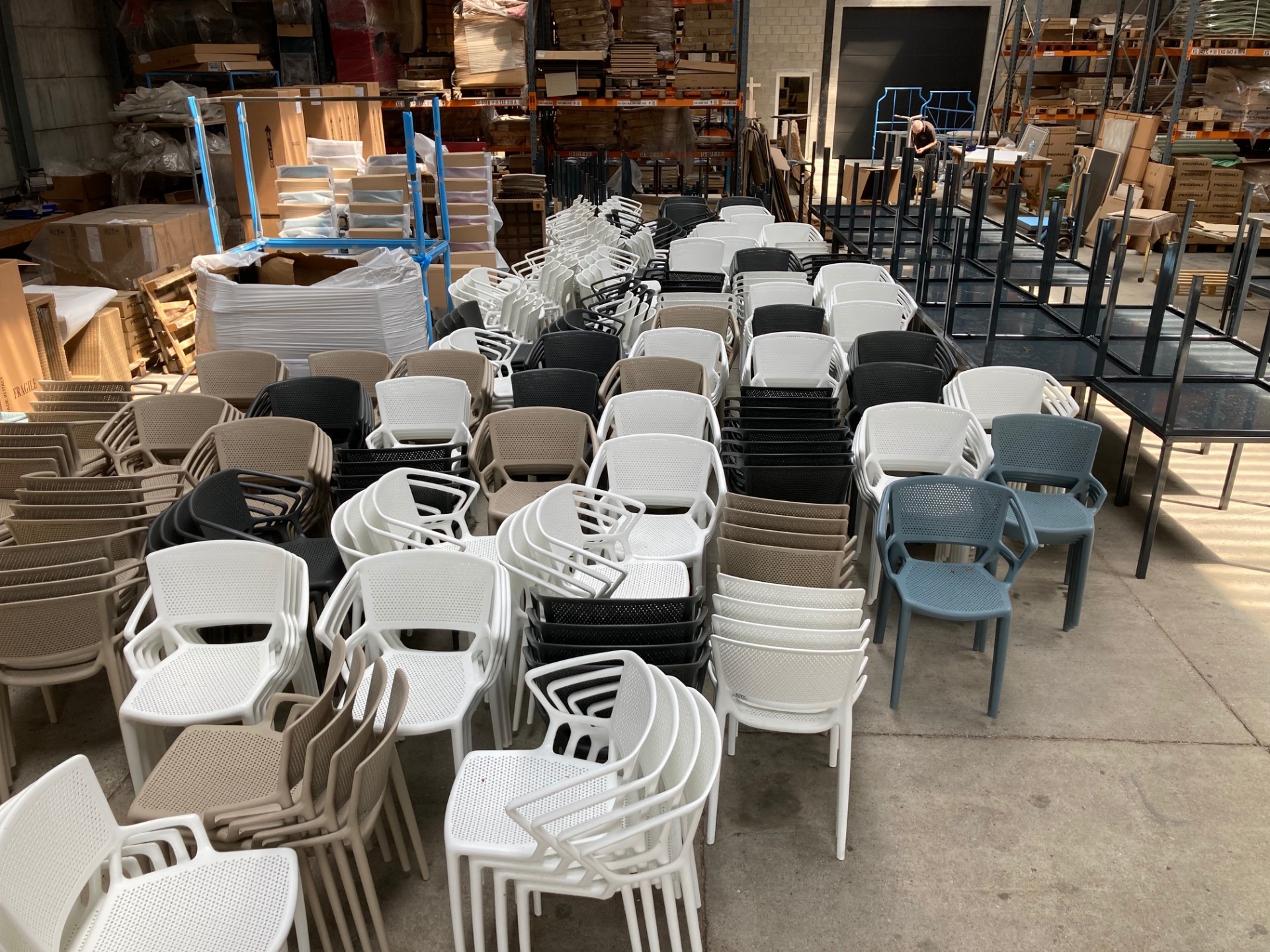 Stapelbare kunststof terrasstoel Infiniti Fiorellina.Eenmalig gebruikt. Goede staat.wit: 150 stuks in voorraadantraciet: 2 stuks in voorraad