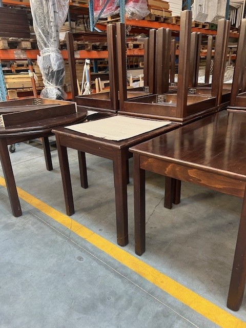 Tweedehands massief houten tafel 140/70cm.3 stuksEveneens vierkante en ronde tafels verkrijgbaar.