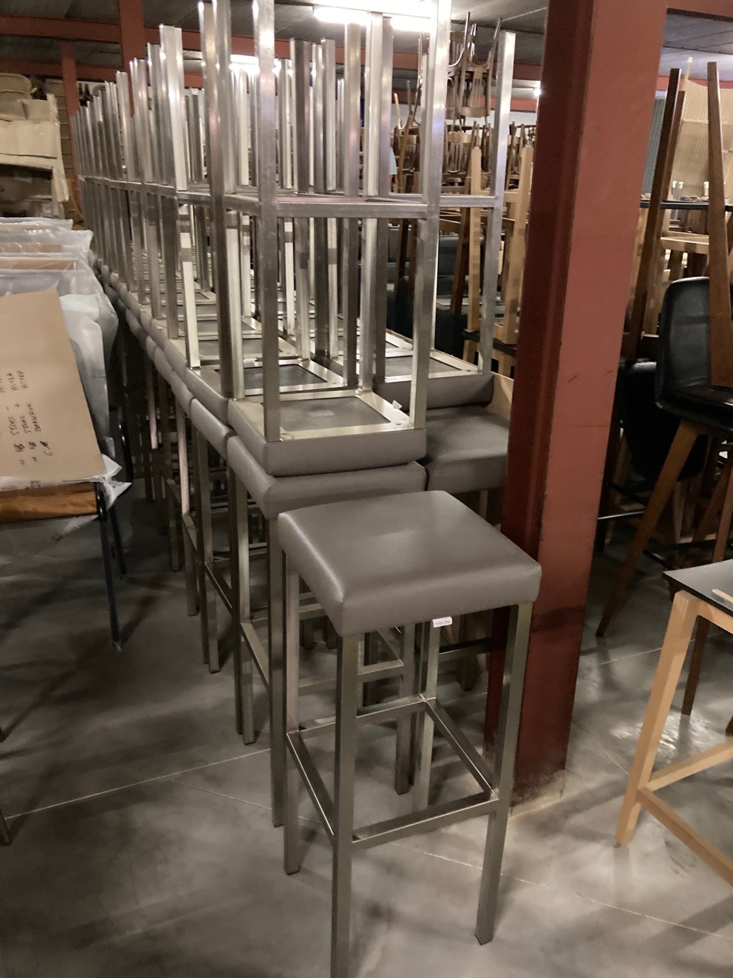 Barkruk gechromeerd frame en beklede zit (nieuwe taupe bekleding!).