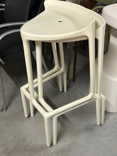 Witte stapelbare Pedrali Happy barkrukken.Toonzaalmodellen.