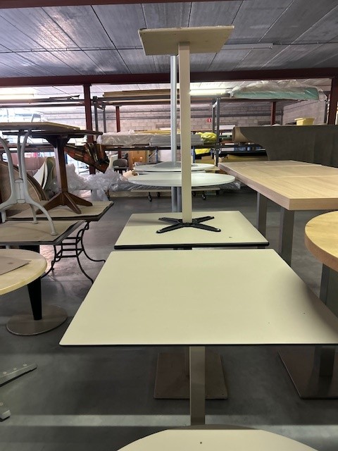 3 x Halfhoge tafel blad 70/70 cm + onderstel zandkleur NIEUWPRIJS € 318,25