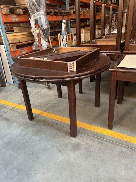 Tweedehands massief houten tafel diameter 120 cm.2 stuksEveneens vierkante en rechthoekige tafels verkrijgbaar.