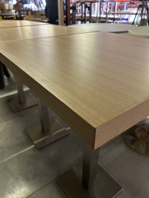 Laminaat blad dikte 5 cm 80 x 80 cmInox onderstel hoog - dit kan ingekort wordenPedrali onderdelenTweedehands3 tafels in voorraad