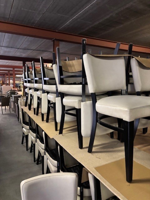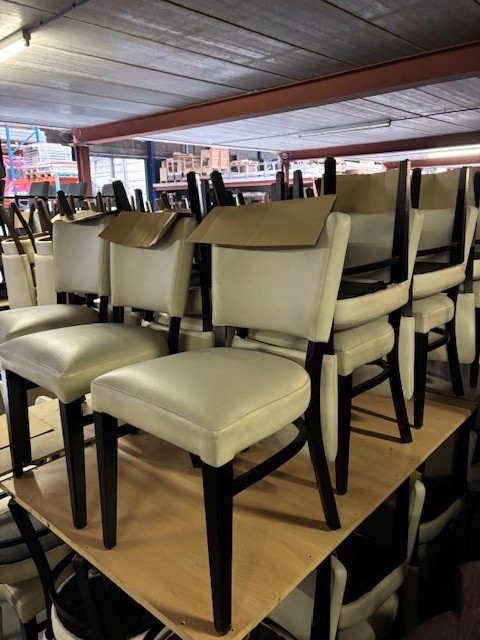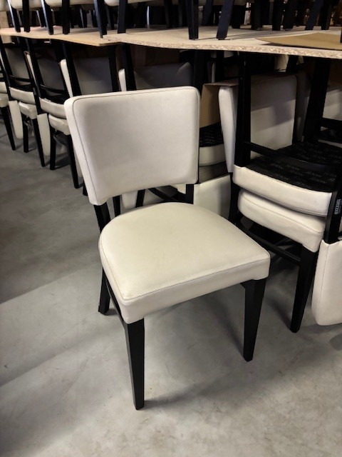 Tweedehands stoelen van het merk Ton. Zit en rug bekleed met kunstleder.