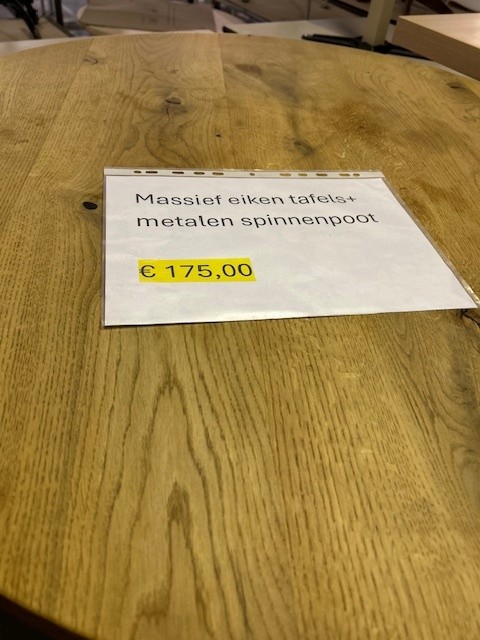 Massief eiken blad diameter 100 cmTweedehands tafels nog 4 beschikbaar