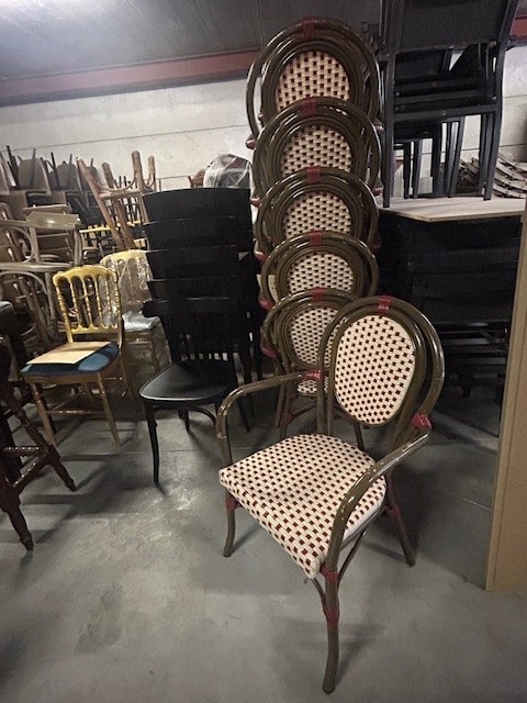 Lot tweedehands terrasstoelen.12 met armleuningen18 zonder armleuningen