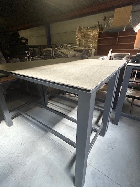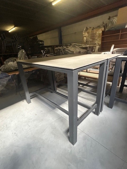 Rechthoekige terrastafel halfhoog 140 x 75 cm. 2 stuksVierkante terrastafel halfhoog 90/90 cm 1 stukTweedehands